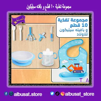 مجموعة تغذية 10 قطع مع بافته سيليكونتوفر لك جميع الأدوات الضرورية لتغذية طفلك بطريقة آمنة وصحية. 🍼✨ تحتوي المجموعة على أدوات مصنوعة من سيليكون آمن لراحة طفلك أثناء الوجبات. 🌟💡 احصلي عليها الآن لضمان تغذية مثالية وآمنة لطفلك في كل الأوقات!