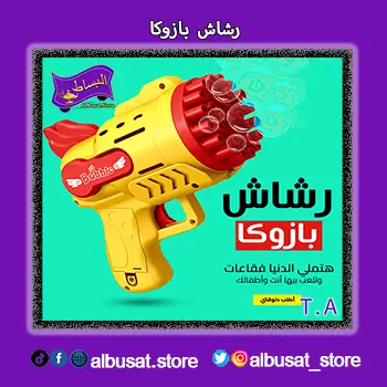 رشاش بازوكا هو لعبة ممتعة ومثالية للأطفال والكبار على حد سواء، توفر تجربة مليئة بالمرح من خلال إطلاق الفقاعات بحجم كبير. يتميز بتصميم سهل الاستخدام يعمل على إضافة جو من البهجة في أي مناسبة أو احتفال. إذا كنت تبحث عن لعبة مبتكرة ومميزة، رشاش بازوكا هو الخيار المثالي لجعل اللحظات أكثر متعة وإثارة. رشاش بازوكا لعبة مثالية لعشاق المغامرات والإثارة،