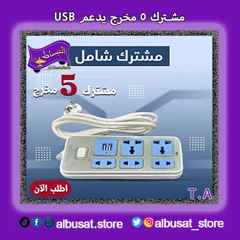مشترك كهرباء 5 مخرج مع منافذ USB لتوفير الشحن السريع للأجهزة المختلفة بكل سهولة وأمان. 🔌 تصميم عملي يوفر الحماية ضد زيادة التيار الكهربائي ومناسب للاستخدام في المنزل والمكتب. استمتع بمزايا متعددة في جهاز واحد لتلبية جميع احتياجاتك. ⚡