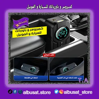 كمبروسر وباوربانك للسيارة والموبايل بحجم صغير وقوي