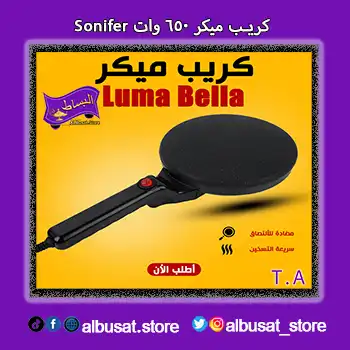 كريب ميكر Sonifer - جهاز صنع الكريب المثالي لتحضير الكريب بكل سهولة في المنزل. تصميم مدمج وعصريمع ميزات متعددة لتحضير كريب لذيذ بسرعة وجودة عالية.يعمل بكفاءة عالية ويوفر لك تجربة طهي احترافية مثل المحلات، مثالي للمطابخ الصغيرة.