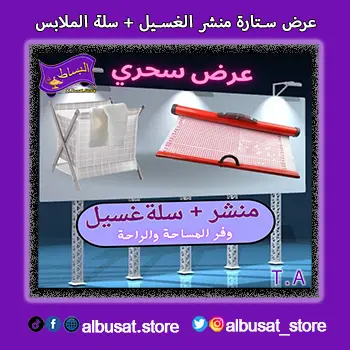 عرض ستارة منشر الغسيل السحري + سلة الملابس هو الحل المثالي لتنظيم الغسيل في المنزل! ✅ المنشر السحري يوفر لك مساحة إضافية ويجعل عملية تعليق الغسيل أسهل وأسرع.💡 سلة الملابس تصميمها مريح وتنظم ملابسك بشكل عملي ومريح.