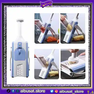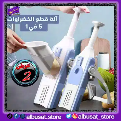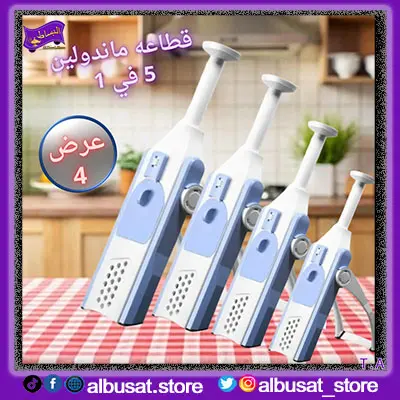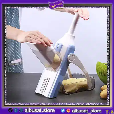 اكتشفي قطاعه ماندولين 5 في 1 متعددة الشفرات لتقطيع الخضار والفواكه بسهولة وسرعة، تصميم عملي وآمن للاستخدام اليومي يوفر وقتك في المطبخ .