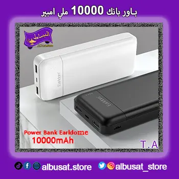 باور بانك Earldome 10000mAh يوفر شحن سريع وموثوق لأجهزتك المحمولة. بتصميم مدمج وأنيق، يتيح لك حمله بسهولة في جيبك أو حقيبتك، مما يجعله الحل المثالي .