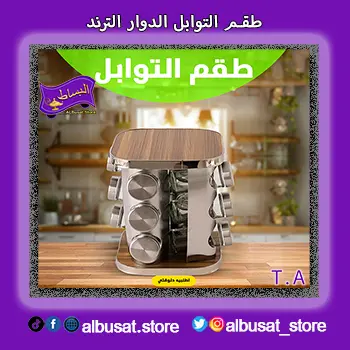 طقم التوابل الدوار الترند هو الخيار المثالي لإضافة لمسة من التنظيم والابتكار للمطبخ. يتميز بتصميمه العصري الذي يسهل الوصول إلى التوابل بيد واحدة.
