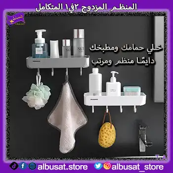 منظم مزدوج 2×1 للحمام والمطبخ يحل مشكلة الفوضى ويوفر مساحة إضافية بسهولة 🛁🍽️.✔️ تصميم متكامل وعصري يناسب كل المساحات ويُثبت بسهولة بدون حفر 🔧.💪 استمتع بحمام ومطبخ منظم دائمًا مع أفضل حل للتخزين الذكي!