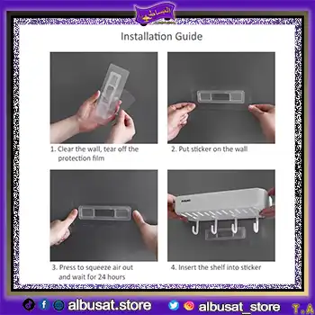 محتوى العبوة: 4 علاقات (هوك) + لاصق دبل فيس للتثبيت القوي بدون حفر أو أدوات.