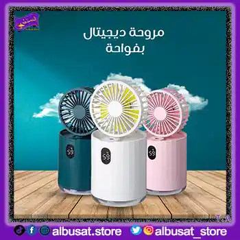 مروحة ديچيتال 2×1 بفواحة 💧 لتعطير وتبريد الجو، هواء نقي + رائحة منعشة بلمسة زر واحدة 🔥 مثالية للبيت والمكتب خلال الصيف 🏠💼