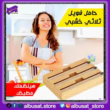 حامل فويل ثلاثي خشبي أنيق لتنظيم ورق الفويل والمناديل والبلاستيك.يوفر مساحة في المطبخ ويضيف لمسة ديكور طبيعية. سهل التركيب ومتين ومناسب للاستخدام اليومي.