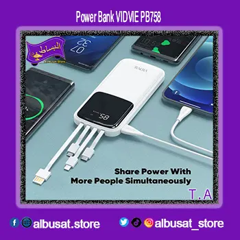 فيدفي عملتلك باور بنك بالوصلات بتاعته عشان متدورش على وصلة تشحن بيها موبايلك, VIDVIE PB758 وفرناه النهاردة بسعر ميتفوتش, الحق اطلبه قبل الكمية ما تخلص.